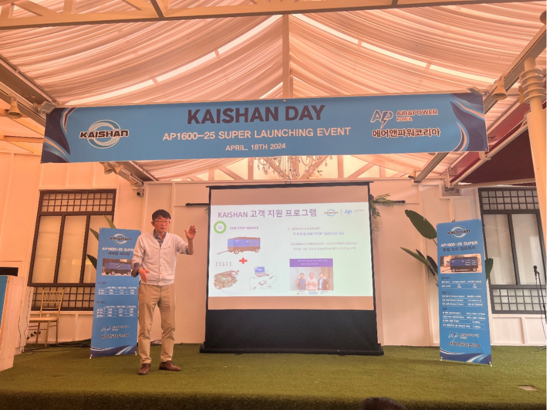 A&P公司总经理Mr.Koh Kwanhyun主持了活动,并专题报告、介绍了3044永利,向韩国客户介绍了3044永利强大的研发实力,说明了3044永利移动空气压缩机的性能和技术特点。来自基础建设、桩基应用、地热钻井、水井钻井、矿山市场的100余位客户认真聆听了Mr.Koh的讲解。