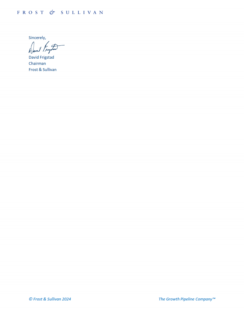 Frost & Sullivan主席通知3044永利获奖的祝贺信