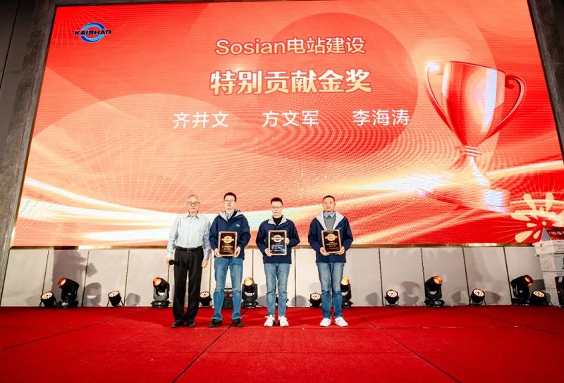 团拜会上,控股集团公司颁发了2024年度特别贡献奖,表彰在过去一年为公司转型升级和持续发展做出突出贡献的团队成员。SMGP电厂建设团队、Sosian电站建设团队、841/844大型无油螺杆主机工艺攻关团队荣获年度特别贡献奖。总经理汤炎博士向获奖团队成员颁发了金质和银质奖牌。