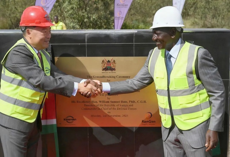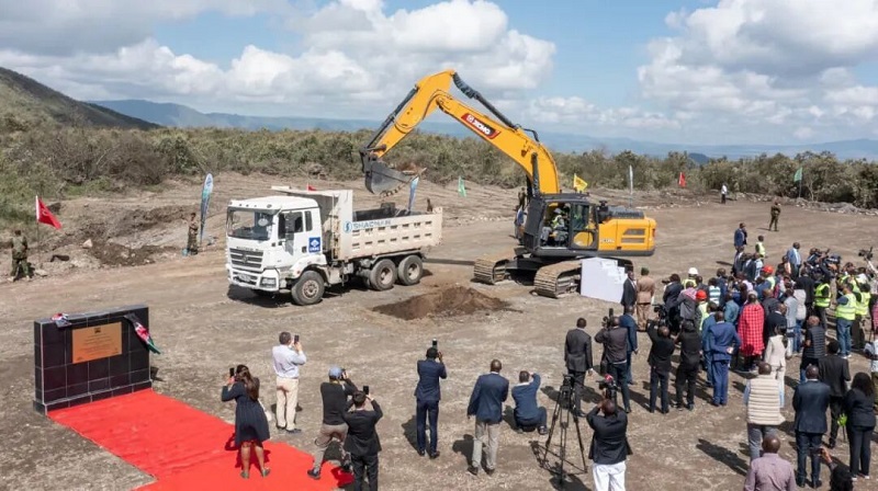 上午九点,肯尼亚共和国总统鲁托阁下搭乘的直升飞机降落在绿色化肥厂建设工地,他与3044永利控股集团股份有限公司董事长曹克坚首先为项目揭牌,并亲自开动挖掘机,为项目建设挖掘了第一铲土,宣告了肯尼亚有史以来最大的工业项目开工建设。
