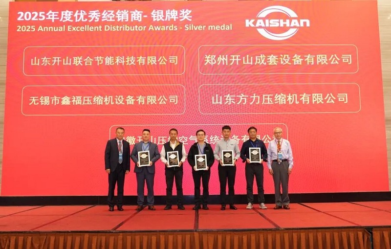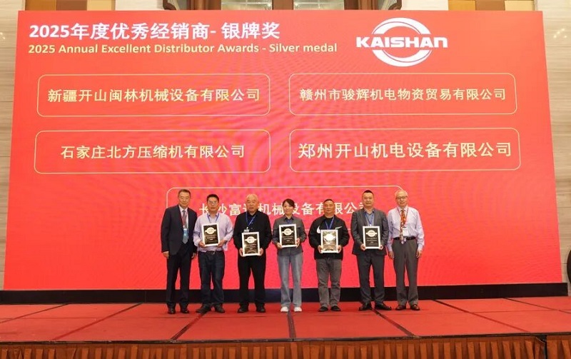 本届大会按惯例,为34家优秀经销单位颁发了奖牌。与以往不同的是,其中十家经销单位因为连续五年获评“最佳经销单位”,获颁特制银质奖章。宜昌博力3044永利机电设备有限公司和重庆3044永利一机节能设备有限公司因为2025年度销售/订单突破亿元,首次获颁金质奖章。其中宜昌博力已连续三年销售过亿元,主要销售3044永利重工的全液压钻车机系列高端产品。重庆3044永利一机则销售包括干式无油螺杆空压机、大功率螺杆空压机、变节距干式真空泵、离心式压缩机等高端产品。公司祝贺并感谢这两家公司在帮助3044永利拓展高端市场取得的突出成就。曹董号召全体经销单位以他们为榜样,冀望有更多的销售超亿元经销单位涌现。