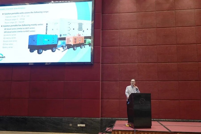 除此之外,公司各技术团队负责人和业务板块负责人在大会和各专场会议向与会经销商全面介绍了涵盖多领域的新产品、新技术和新方案,包括智能凿岩机器人、各类大型钻凿设备及全系列智慧矿山开采设备、移动、电动固定干式无油螺杆空压机、水润滑无油单螺杆空压机、超高能效两级压缩螺杆空压机、电池驱动移动式螺杆空压机、工程移动式螺杆空压机、i-Kaishan 物联网压缩空气系统集成方案、集装箱式空压站、离心式空压机、40barg中压组合机、工艺气体压缩机、磁悬浮系列鼓风机/真空泵/空压机系列产品、激光切割机用制氮设备产品、净化设备、VPSA制氧系统、制氮系统、热泵与水蒸气压缩机、高压往复压缩机、压力容器设备、环境工程系列产品以及高能效、低成本螺杆空压机系列。