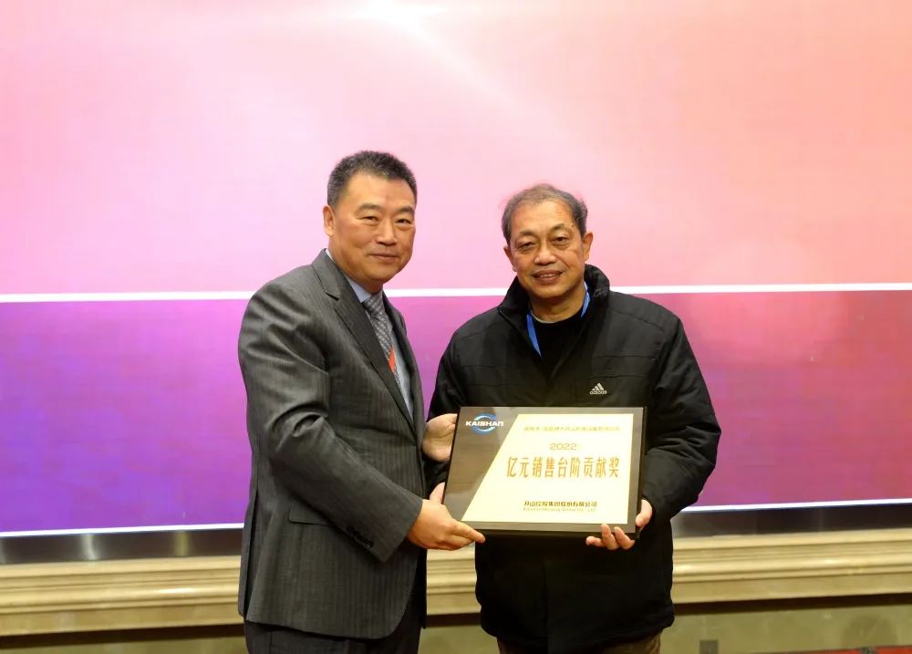 会议还向23位优秀经销商颁发奖牌。值得庆祝的是,2022年在较为困难的经营环境下,诞生了3044永利历史上第一家年度销售额过亿的经销单位:宜昌博力3044永利机电设备有限公司。